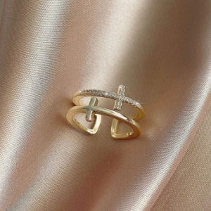 1* Women’s open ring with zircon inlaid copper